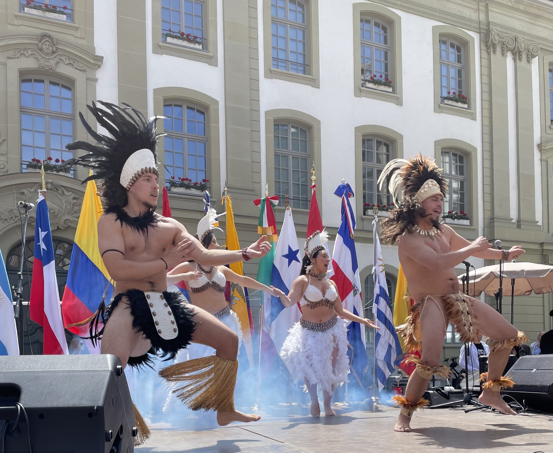 El festival reunió a 62 puestos y representaciones de 14 países –entre ellos Chile–, y congregó a más de 3.500 personas durante la jornada, incluyendo residentes locales, turistas y miembros de las comunidades latinoamericanas residentes. La plaza, declarada Patrimonio de la Humanidad por la UNESCO, se transformó en un punto de encuentro vibrante entre Suiza y América Latina.