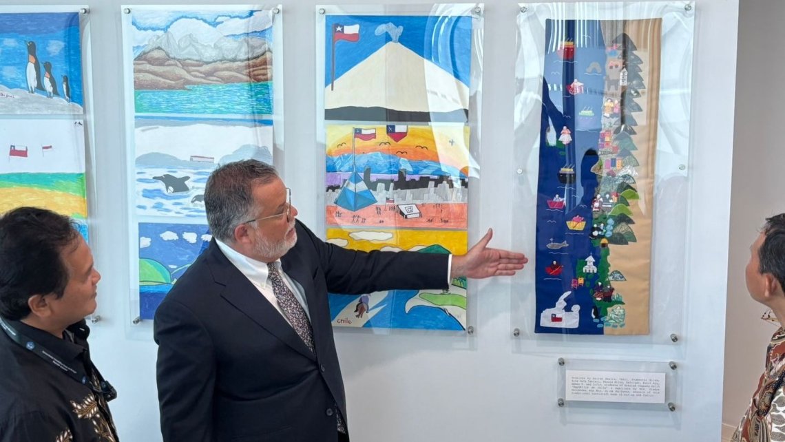 Un grupo de nueve estudiantes visitó la misión diplomática para inaugurar el mural elaborado con sus dibujos. La actividad forma parte de las conmemoraciones de los 60 años de relaciones entre Chile e Indonesia.